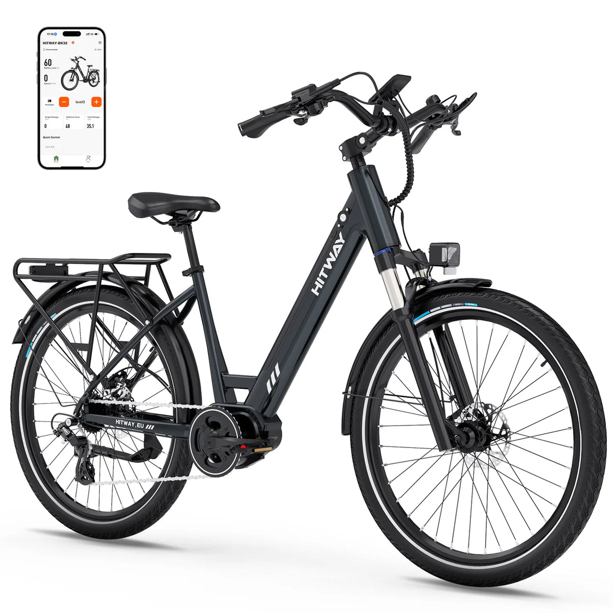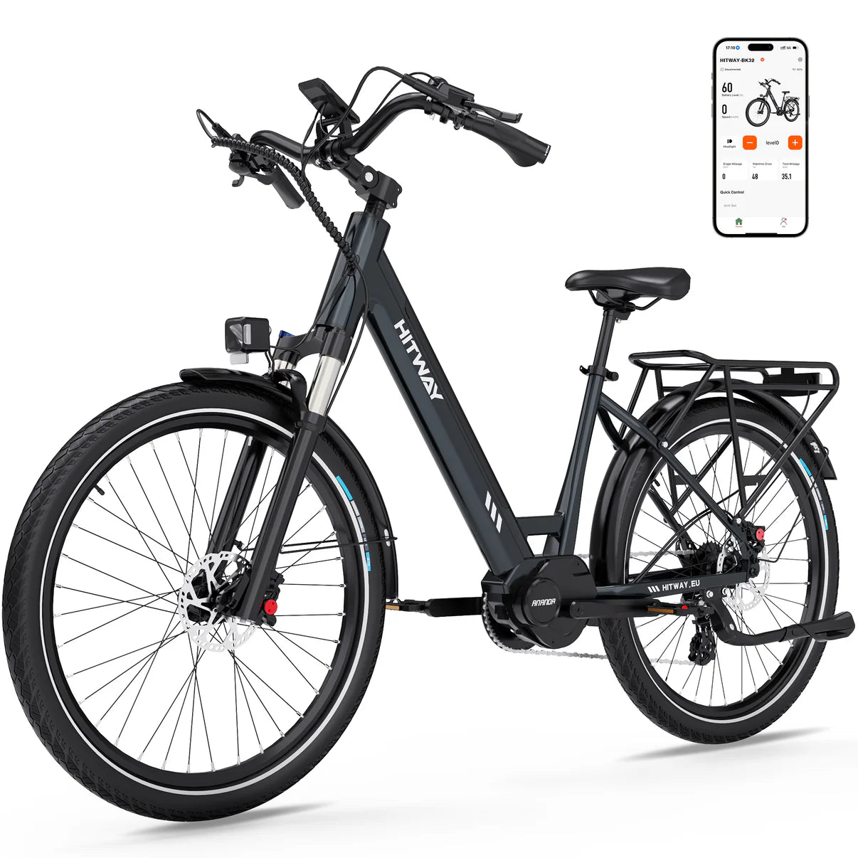 Blijf verbonden met het intelligente Bluetooth LCD-scherm dat je snelheid, kilometerstand en accustatus in realtime weergeeft. Synchroniseer met de HITWAY-app om je routes te volgen, prestatiegegevens te analyseren en je rijervaring te personaliseren – allemaal vanaf je smartphone.