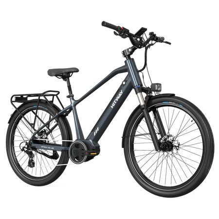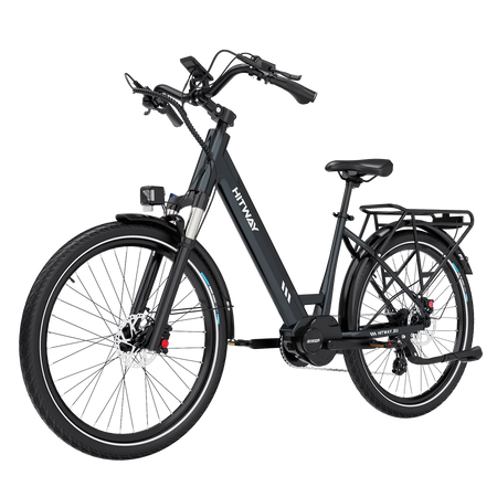 Verover zowel stadsstraten als plattelandspaden met 26x2,35 inch lekbestendige banden, vergrendelbare voorvering en hydraulische schijfremmen voor extra veiligheid en comfort. Met een klimvermogen van 25 graden en een topsnelheid van 25 km/u garandeert deze elektrische fiets stabiliteit en controle op elk terrein.